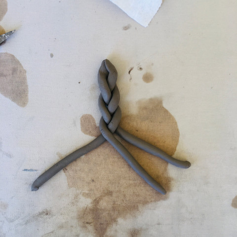 In the morning I attempted to make some handles by weaving three coils in a braided pattern and attached it to my piece. I was very thrilled with the final result. It is one of my favourite pieces.